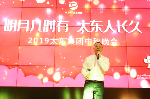 晚会上,苏志团董事长借用宋代大文学家苏轼的《水调歌头·明月几时有》,以“明月”表达美好的中秋佳节祝福,以“但愿人长久,千里共婵娟”感谢“昨天、今天、明天”共同成长奋斗的全体太东员工,以及一直给予太东支持和厚爱的合作伙伴。