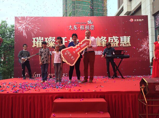 苹果笔记本、Iphone6、Ipadmini2等价值10万元豪礼抽奖将开盘活动一次又一次推向高潮。最激动人心的2988元/㎡抽房活动在万众期待中终于到来,已荣升业主的魏女士成为今日最幸运的客户,喜中2988元/㎡终极大奖,欢呼声、惊讶声、叹息声顿时充斥整个活动现场,太东地产总经理亲手将终极大奖“金钥匙”交到魏女士手中,其激动的心情久久难以平复!