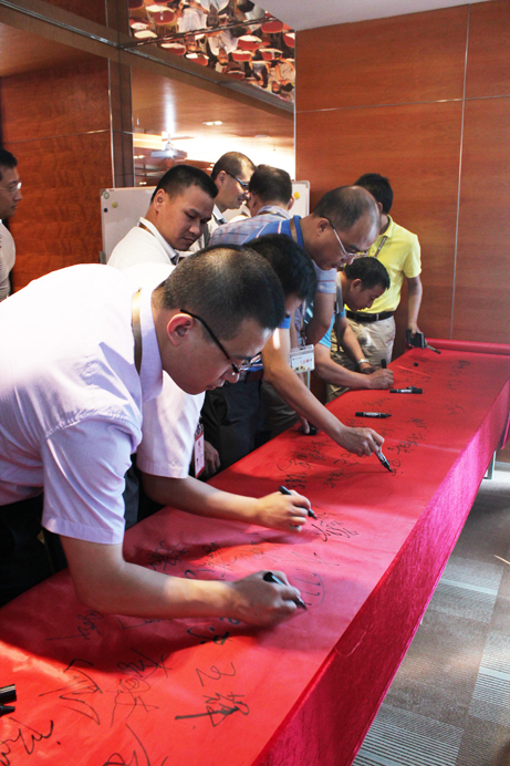 苏董、副总裁陈国雄、副总裁袁毅、董事长助理李志华共同完成了太东商学院揭牌仪式,标志着太东商学院正式启动。启动仪式之后,是百人签名环节,太东商学院首批学员均在红绸上签名,共同见证了太东集团这一历史时刻,并共同祝福太东商学院长远发展、太东集团基业长青。