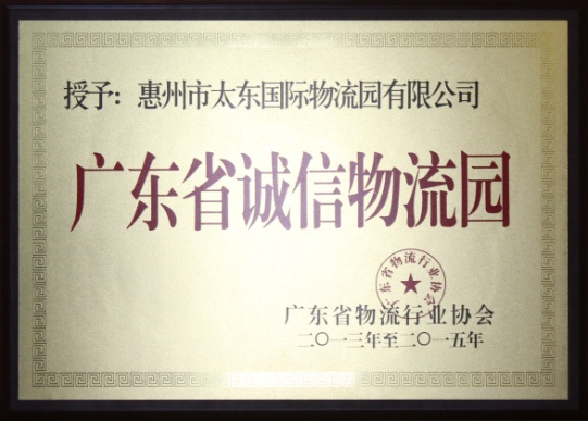 会上表彰了入选2013年广东省诚信物流园区和企业,太东集团旗下惠州市太东国际物流园有限公司和惠州市锦通物流有限公司分别荣获“广东省诚信物流园区”和“广东省诚信物流企业”荣誉称号。