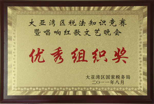 2011年8月23日晚,大亚湾区税法知识竞赛暨唱响红歌文艺晚会在惠民广场隆重举行,我司近百名员工作为受邀观众参加此次晚会。晚会期间,我司员工自编自演的爵士舞《旋转》作为大亚湾区企业唯一选送的节目精彩亮相,他们精彩的表演展现了太东人青春、活力、阳光、进取的精神风貌,赢得了现场观众阵阵热烈的掌声。基于种种出色表现,我司获大亚湾国税局颁发此次晚会的优秀组织奖。