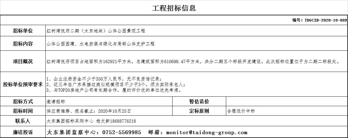 太东集团红树湾悦府二期山体公园景观工程招标公告