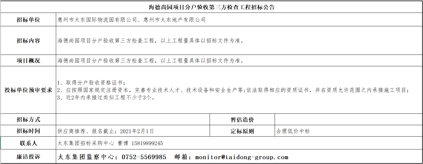 海德尚园项目分户验收第三方检查工程招标公告