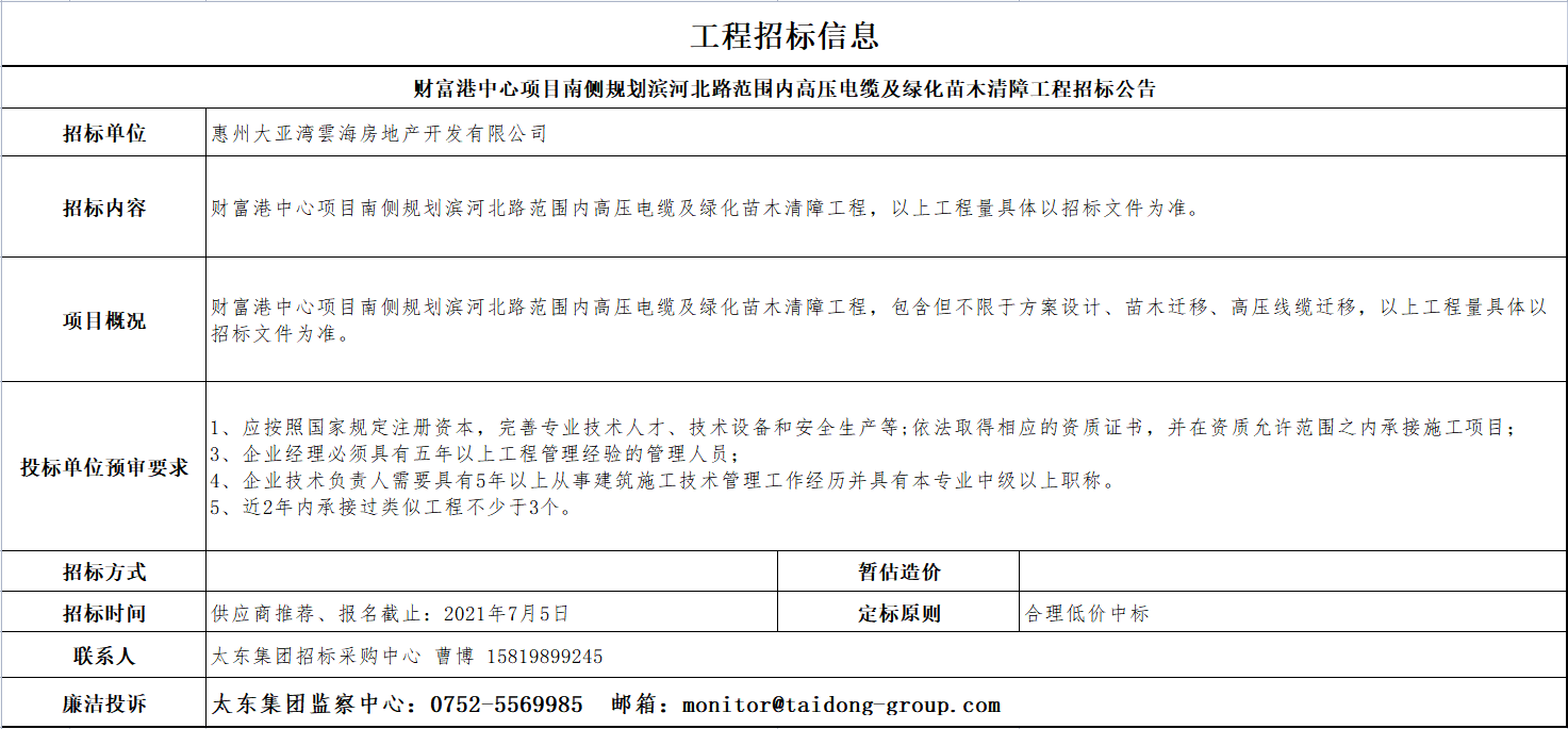 财富港中心项目南侧规划滨河北路范围内高压电缆及绿化苗木清障工程招标公告
