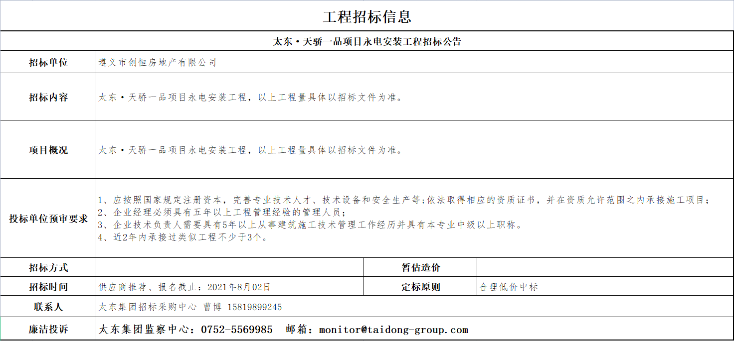 太东·天骄一品项目永电安装工程招标公告