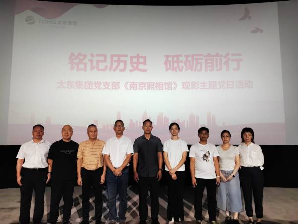 8月5日下午,在纪念中国人民抗日战争暨世界反法西斯战争胜利80周年之际,太东集团党支部开展“铭记历史·砥砺前行”主题党日活动,组织党员前往太东影城观看历史题材影片《南京照相馆》。