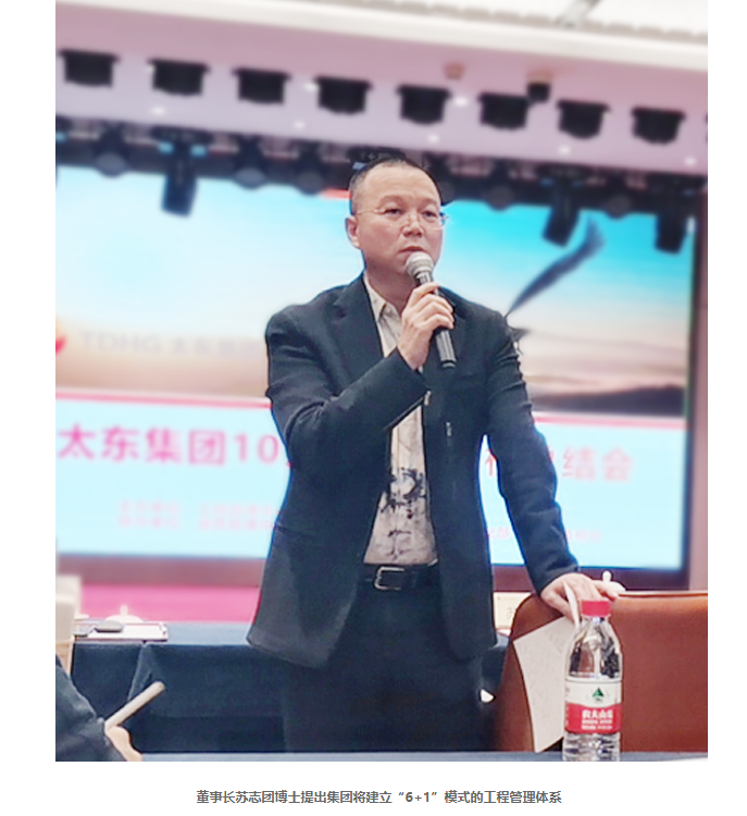 为提高集团工程质量,确保生产安全,助力项目提升管理水平,11月3日晚,太东集团召开10月份工程巡检总结会。董事长苏志团博士、总裁卢总、总裁助理苏品桦等集团高管以及工程管理中心、运营管理中心、各项目主要管理人员、各参建单位代表共60余人参加了会议。本次会议由工程管理中心主办。